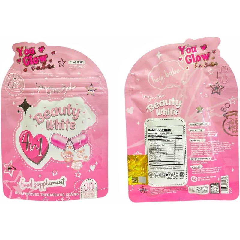 - Includes: You Glow Babe Beauty White Soap Bars (5 x 70g) & Beauty White Capsules (30 Capsules)