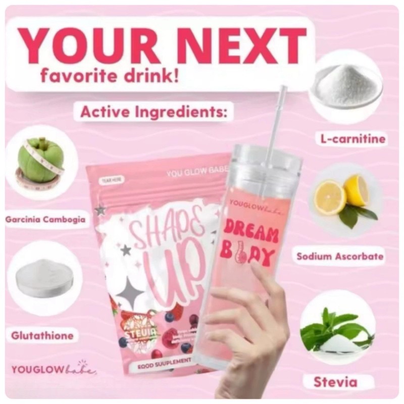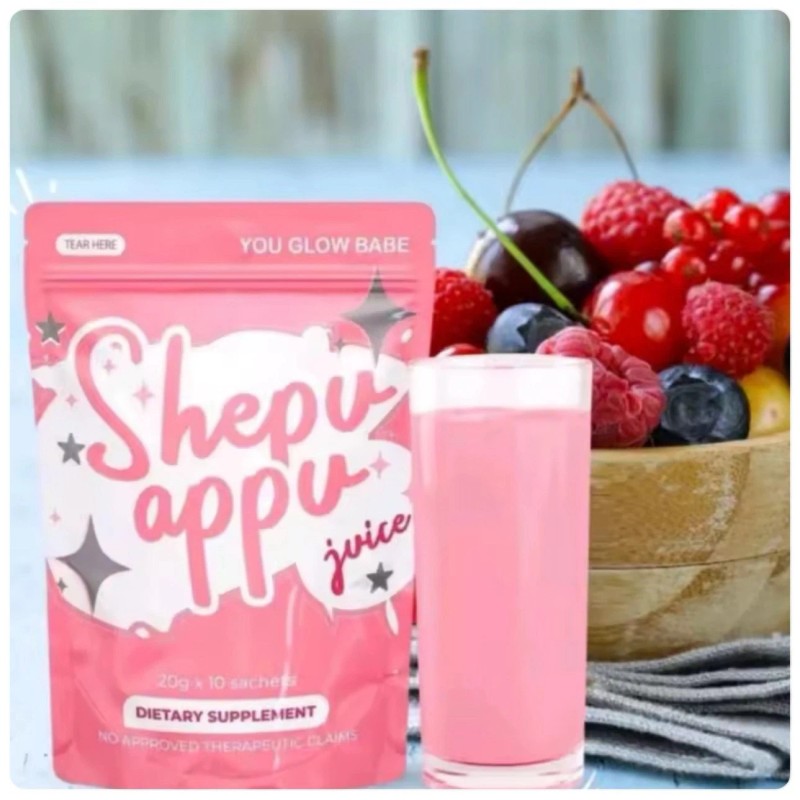 Mix 1 sachet of You Glow Babe SHAPE UP SHEPU APPU Powder slimming juice with water (1 glass), add ice for more refreshing experience. It’s has 10 sachets 15g each.
