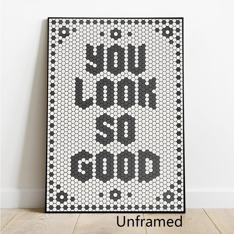 You Look So Good Canvas Wall Art, Black and White Positive Affirmations Poster, Inspirational Quote Typography Print Polka Dots Picture for Bedroom Living Room Wall 12x16in Unframed
