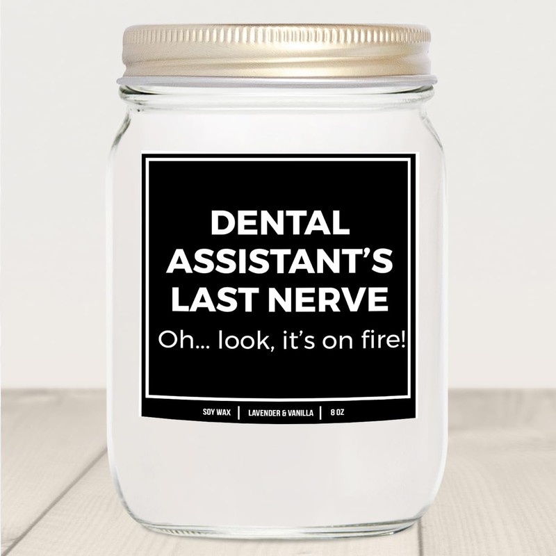 If you're looking for dental hygienist gifts, dental assistant gifts, dental hygiene gifts, gifts for dental hygienist, dental gifts for dental hygienist, dental hygienist gift, dental gifts for dental assistant, dental assistant gift, dental hygienist gifts for women, gifts for dental assistant, gifts for dental assistants week, dental assistant appreciation week, gifts for dental assistants, dental assistant gifts for women, gifts for dental hygienist women, dental assistant week gifts, dental assistants gifts, gift for dental hygienist, or dental assistant appreciation gifts send them this scented candle with the text “Dental Assistant's Last Nerve. Oh...Look, It's On Fire!”