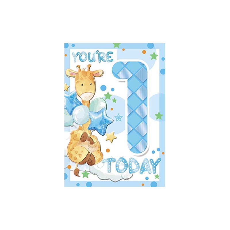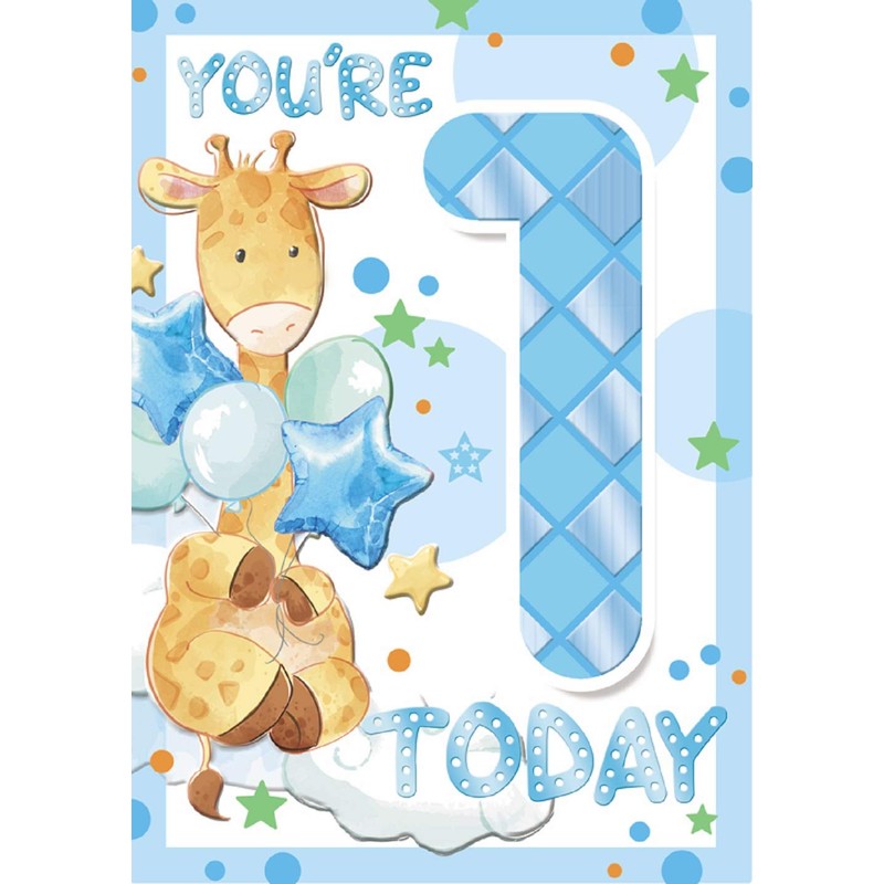 - You're 1 Today. Funny giraffe and balloons card for boys 1st birthday