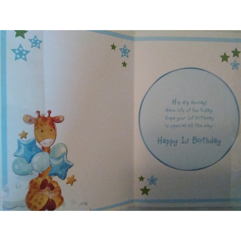 - Message inside reads "Hip Hip Hooray! Have fun today! Hope your 1st Birthday is special all the way. Happy 1st Birthday"