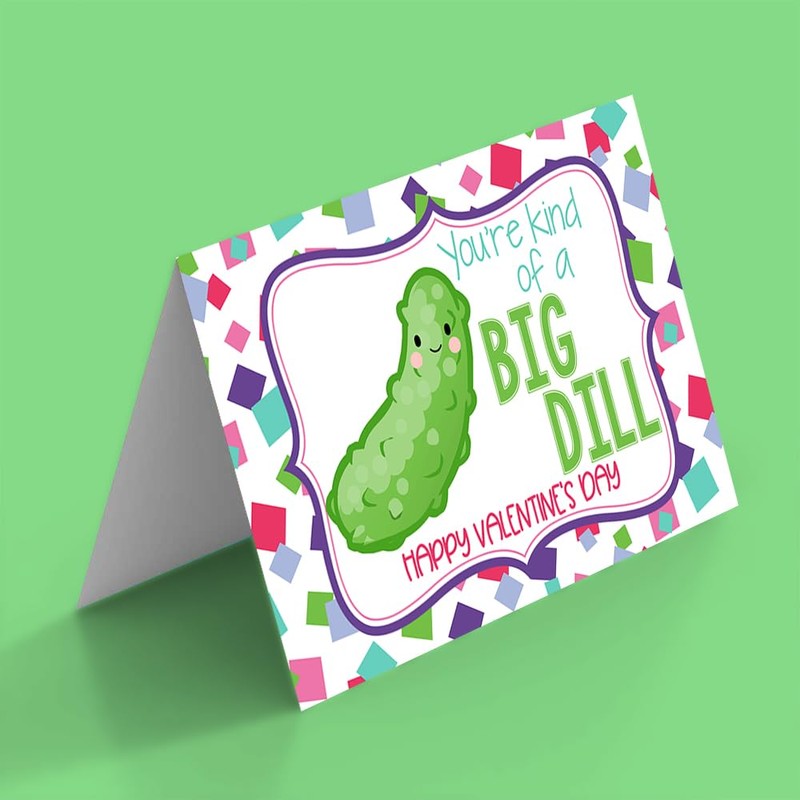 You're a Big Dill Silly Pickle Valentine Pun Themed Single All Occasion Blank Valentine's Day Card To Send To Friends & Family, 4"x 6" (when folded) Fill In Greeting