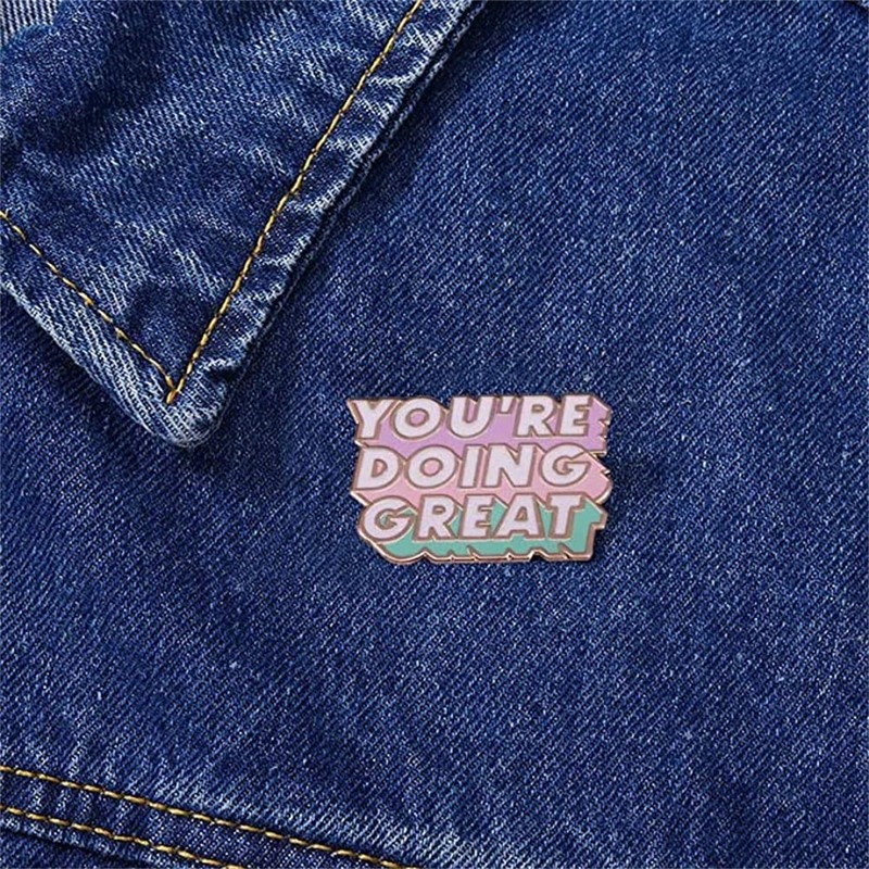 YOU'RE DOING GREAT Brooch Alphabet Classic Inscription Metal Lapel Badge Alloy Oil Drop Enamel Collectible Badge Pin Cute Enamel Badge Suitable for Hat Jacket Canvas Bag, Alloy Steel, no gemstone