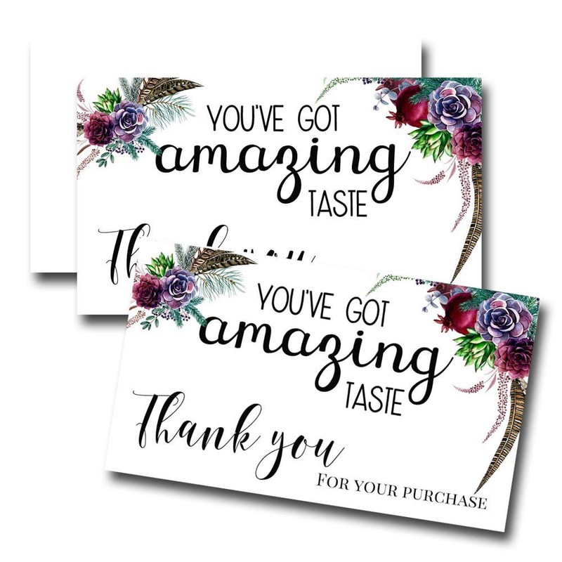 You've Got Amazing Taste Floral Thank You Customer Appreciation Package Inserts for Small Businesses, 100 2" X 3.5” Single Sided Insert Cards by AmandaCreation