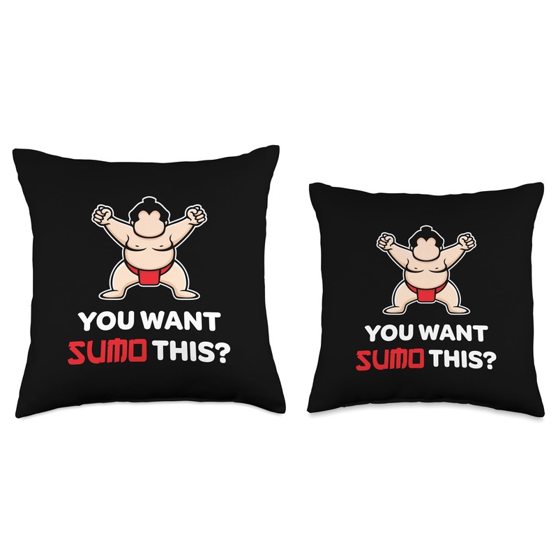 You Want Sumo This? Funny Kawaii Sumo Wrestler Big Guy Throw Pillow