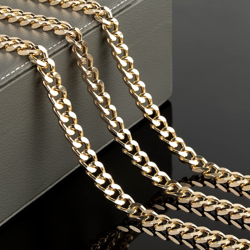 - Wide Applications- The golden diamond cuban link chain bulk is great for jewelry making supplies, matched with jump rings and lobster clasps, you can DIY the chains into any style of necklace, bracelet, anklet, layered chain, body jewelry, or any other jewelry projects for men and women. You can also use the gold plated cuban chain as a decoration chain, key chain, dog tag chain, pocket chain, etc. A wonderful gift for DIY lovers