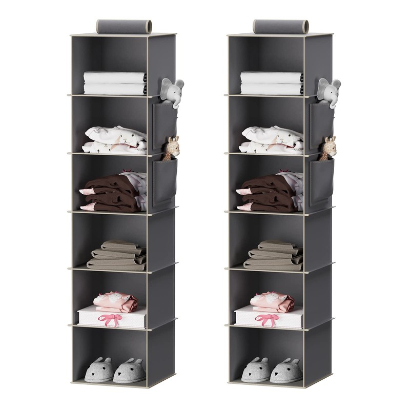 - SUITABLE: The closet hanging storage allows you to have more space in your closet. It has six shelves units. This shelf organizer is suit for people who need more storage, but they do not have space in their closet. Also, it is for people who want to use their space more efficiently.