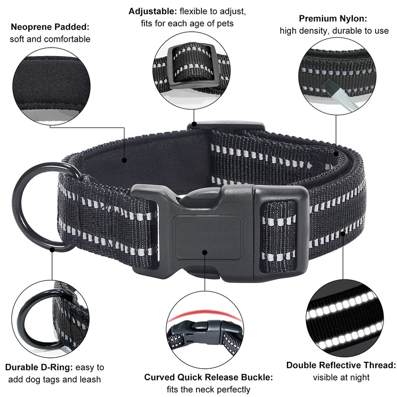 - 【Special Design:】 Curved plastic quick release buckle is designed according to the shape of the dog?s neck, it's lightweight and fits well. Rugged metal D-ring makes it easy to add dog tags and leash onto the collar