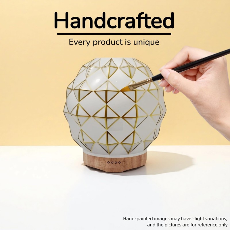 - HANDMADE GLASS COVER: Each glass cover is an artisan's handiwork, which requires a number of processes, such as firing the glass embryo, blowing the glass by hand, applying wax by hand, tracing the edges of the glass by hand, and opening the glass by hand. Each aromatherapy diffuser is a unique craft.
