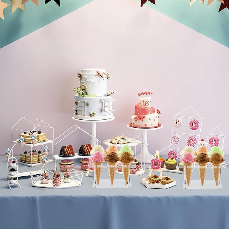 - Widely Application: This waffle cone stand is a useful tool to fill the hole with ice cream cone or any sweet treats. Suitable for Christmas party, picnic, birthday party, wedding party, baby shower, bridal shower, concession stands, which will be an eye-appealing decor to any party.