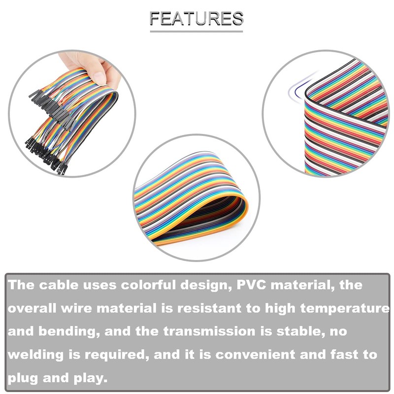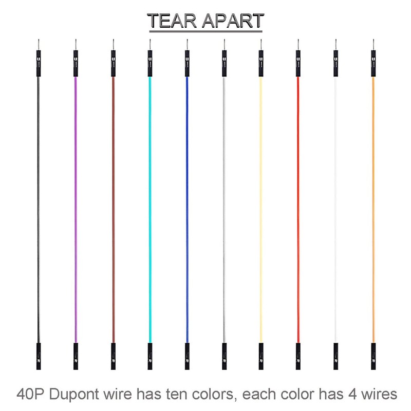 - 【Variety of Varieties】: This kit includes 3 different types of wires (male to female, male to male, female to female) and 20pcs 2.54mm 40P male and female combo pin headers, perfect for any situation you may encounter.
