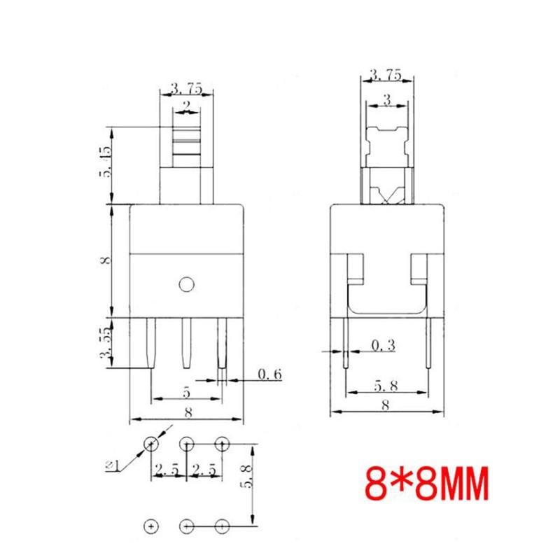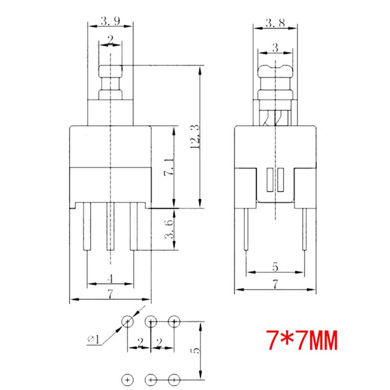 - Switch Size: 0.2 x 0.2 inches (5.8 x 5.8 mm), 0.3 x 0.3 inches (7 x 7 mm), 0.3 x 0.3 inches (8 x 8 mm), 0.3