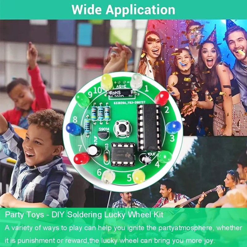 - What it does: This is a lucky wheel LED light DIY welding kit.Participants can personally weld together the various electronic components to assemble a complete lucky wheel LED light.This hands-on creative process can bring a sense of accomplishment and is very suitable for electronics enthusiasts and beginners who want to develop hands-on skills