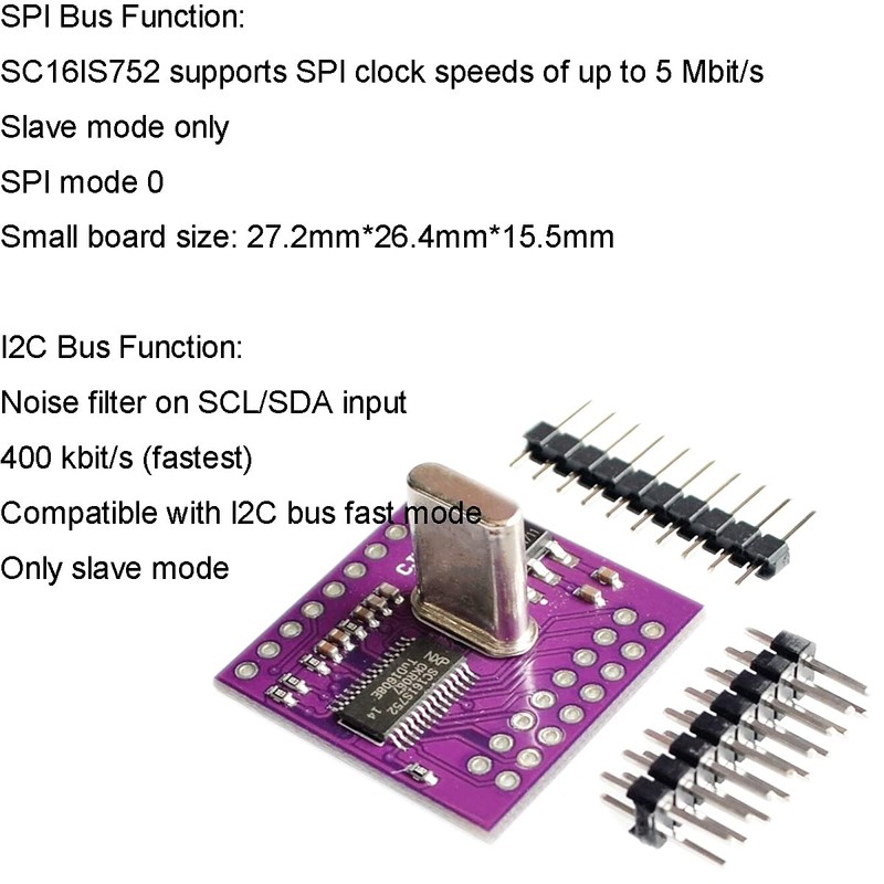 Youmile SC16IS752 I2C/SPI MCU-752 Bus Interface to Dual Channel UART Conversion Module Expansion Board with Pin Header DuPont Cable