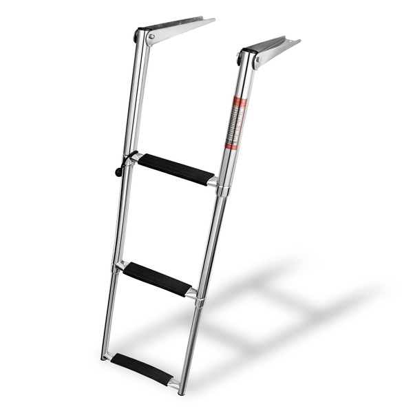 Young Marine Stainless Steel Drop Down Telescopic and Folding Boat Ladder with White Plastic Footboard,Over Platform Mounting (3 Steps Black)