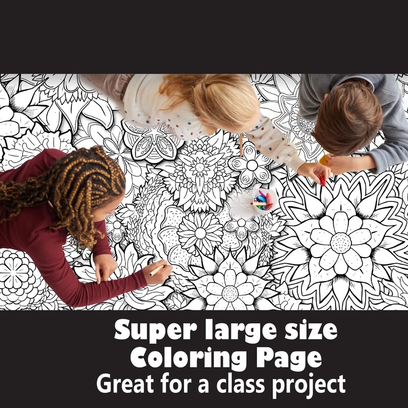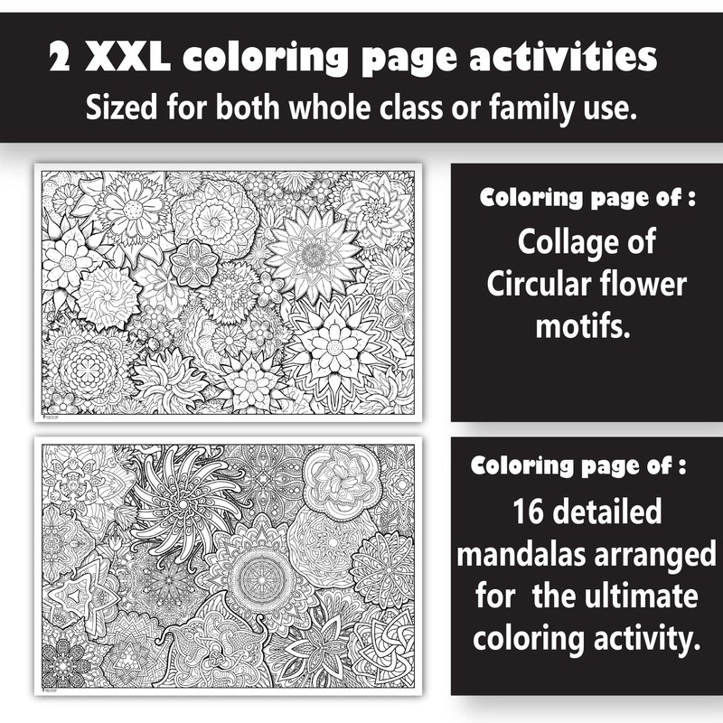 Young N Refined 2 Pack of Giant Coloring Posters of Flowers and Mandala collages Folded Version (42x30)
