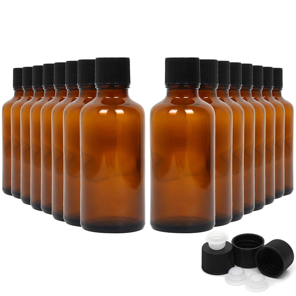 Youngever 12 Pack Empty Glass Bottles with Lids, Amber Glass Tight Seal Lids, Refillable Container for Essential Oils, Vanilla Extract and More (2 Ounce)