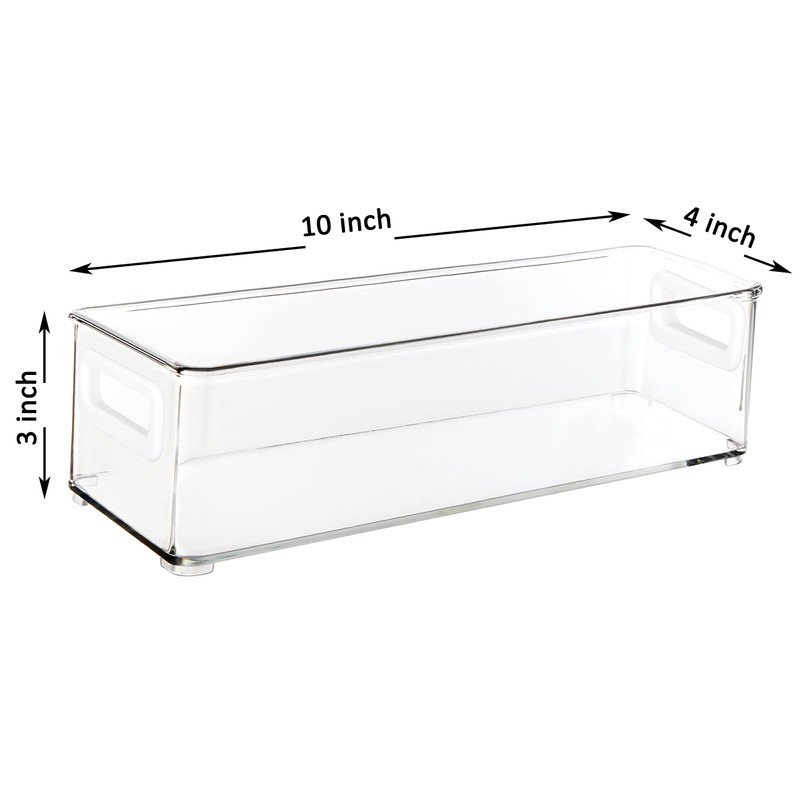 Youngever 2 Pack Stackable Plastic Storage Organizer Container Bin, Stackable Storage Bins with Handler for Refrigerator, Pantry (10" x 4" x 3")