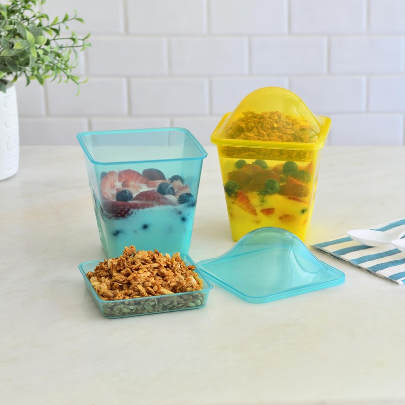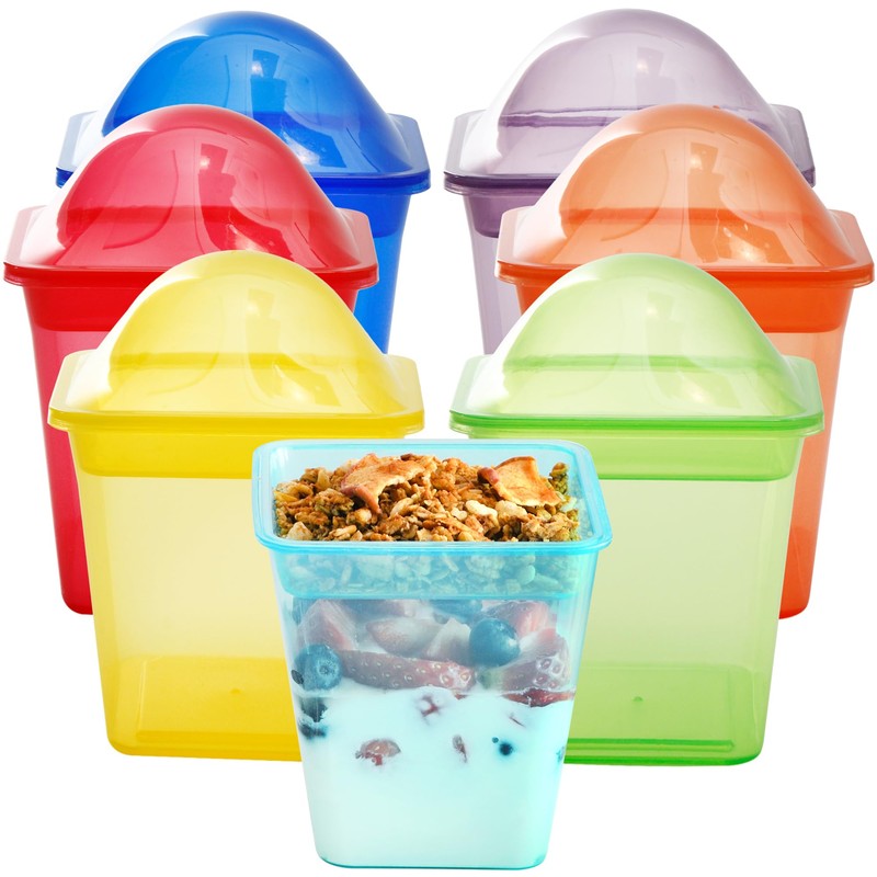 • Plastic Parfait Cups GOOD VALUE - Set of 7 Large 8oz Plastic Dessert Cups with Insert and Lids in 7 Assorted Rainbow Colors.