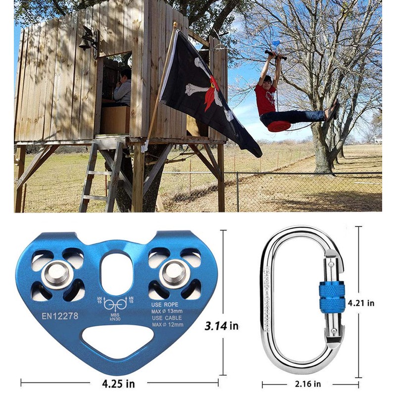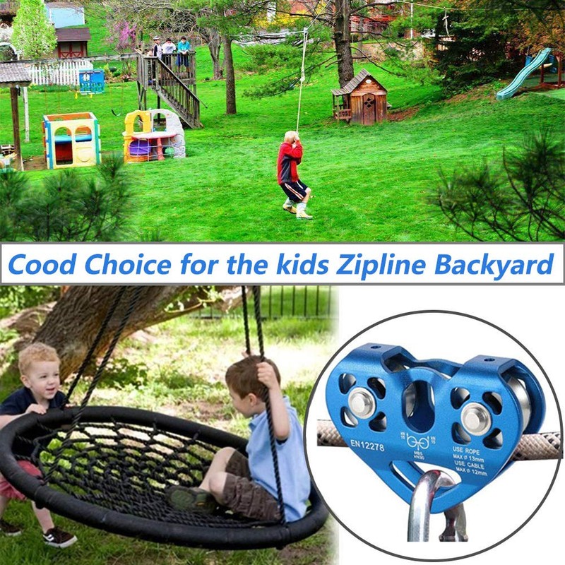 - 【Wide Application】- This climbing dual pulley could be used for backyard zipline/ swing seats/ baby bouncer/setting, dog run tie-out, climbing, lifting, rescue, bungee jumping, downhill, aerial work or other outdoor adventure activities.