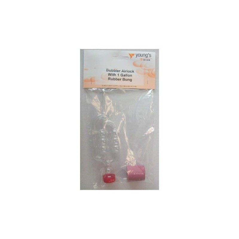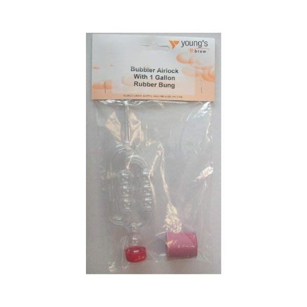 • Youngs Brew Home Brewing Bubbler Airlock With 1 Gallon Rubber Bung by Youngs
