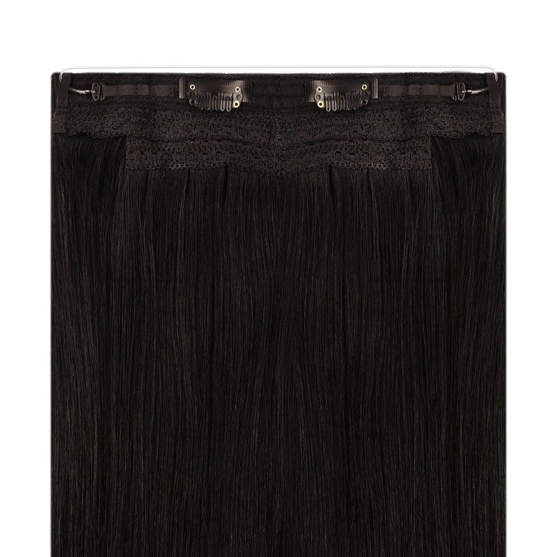 1. Place the hair extension with the wire sitting behind the line. Gently push down to fit over the ears and sit the base of the skull.