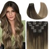 Youngsmile Human Hair Extensions Clip in Balayage Darkest Brown to Medium Bro...