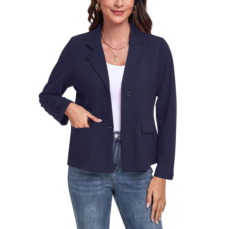 • Feature: Blazer Jackets for Women. Long sleeve, front linend, notch lapel, 2 button closure, two side patch pockets. The womens lightweight blazer is versatile for various occasions, relaxed and effortless fashion.
