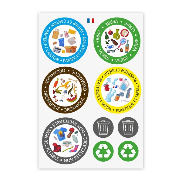 younikat 9 Circular Rubbish Bin Stickers French for Waste Separation I Waste Recycling I Sticker Set I you0018