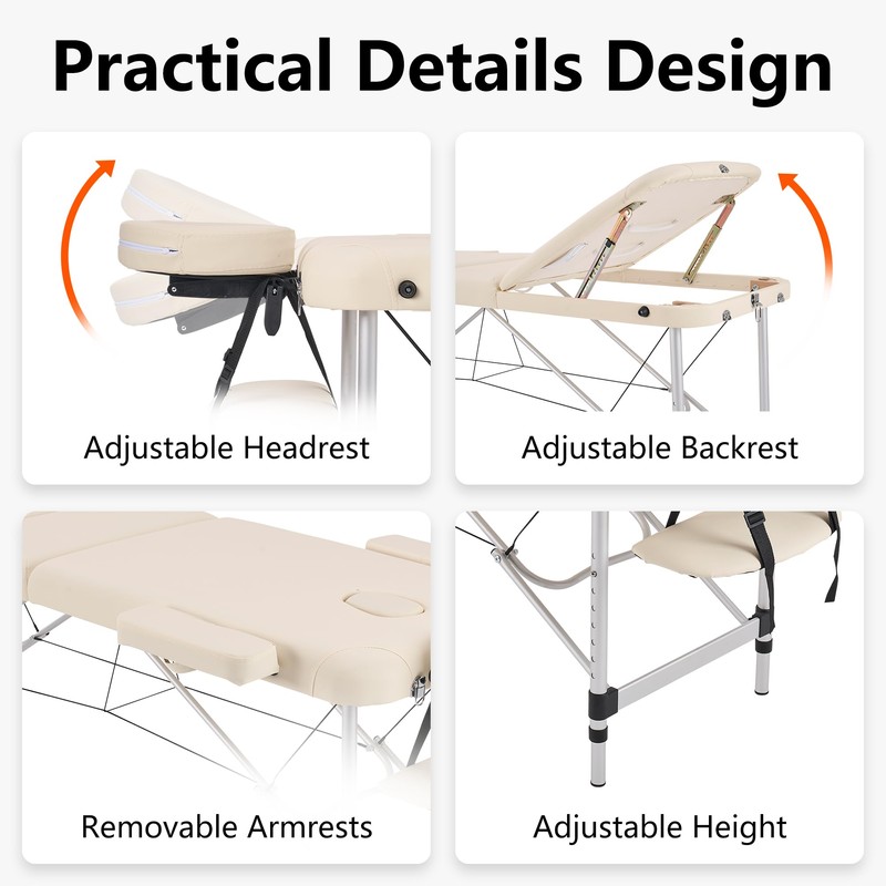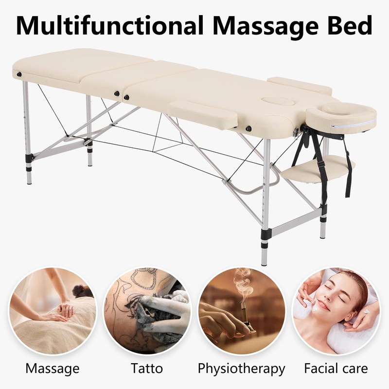 - Professional-Grade Adjustability: Designed for versatility, this massage table features adjustable legs, backrest, and headrest, with a 3-folding ergonomic design for enhanced comfort. Perfect for therapists needing precision in massage, lash extensions, or spa treatments.