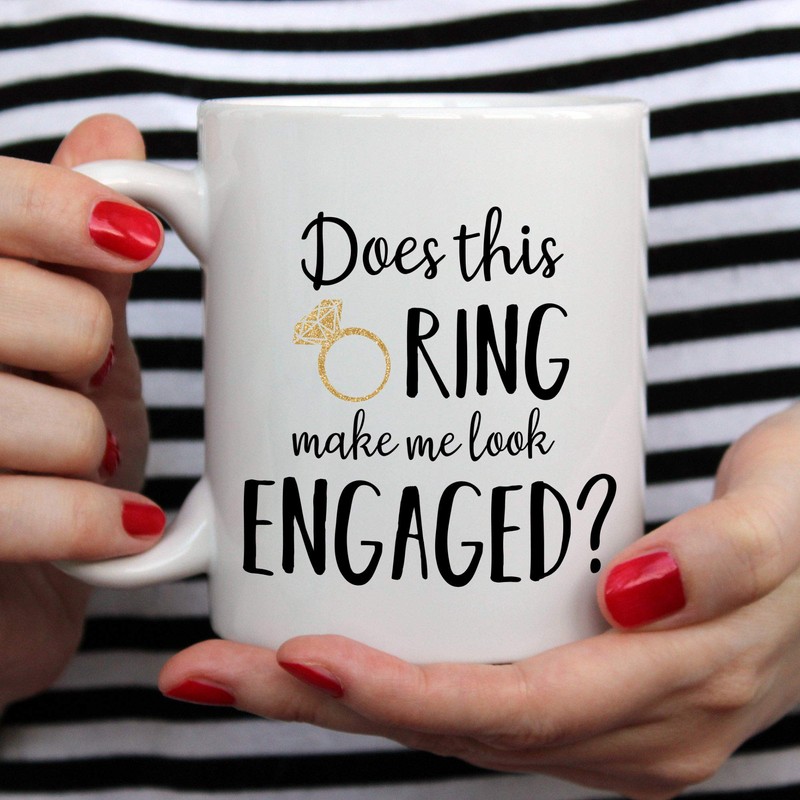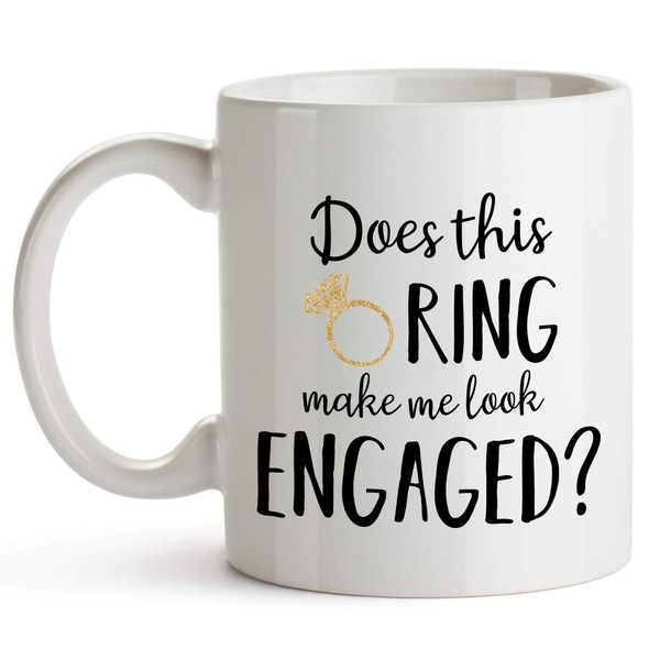YouNique Designs Does This Ring Make Me Look Engaged Mug, 11 Ounces, Engagement Mug for A Bride To Be, Engagement Gift (White)