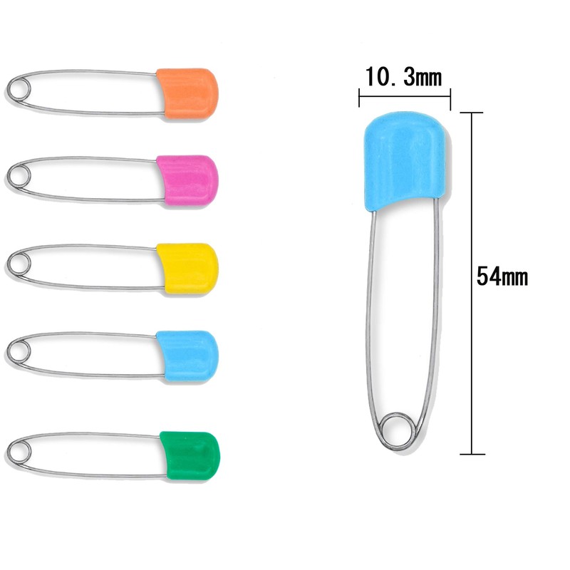 YOUOWO Safety Pins Huge Plus Locking Safety Pins Stainless Steel Color Locking Needles Safety Pins Office Safety Pins 50pcs 54mm (Pink,Yellow,Blue,Orange,Green)