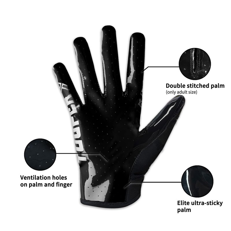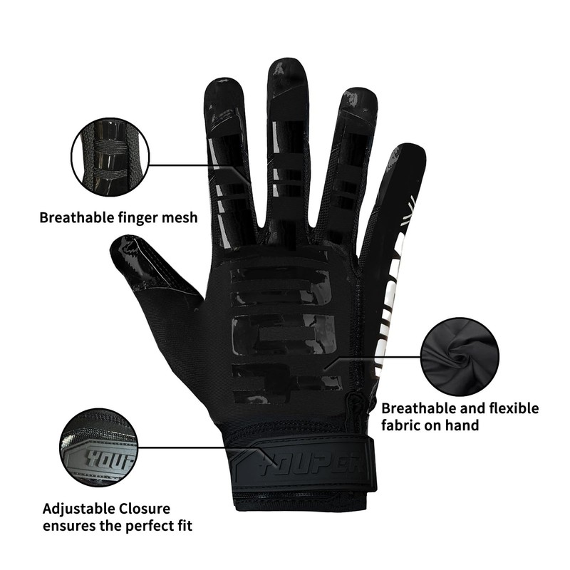 - Customizable Wrist Closure - The sticky football gloves features an adjustable wrist closure for a secure and personalized fit, giving players the confidence to make game-changing plays.