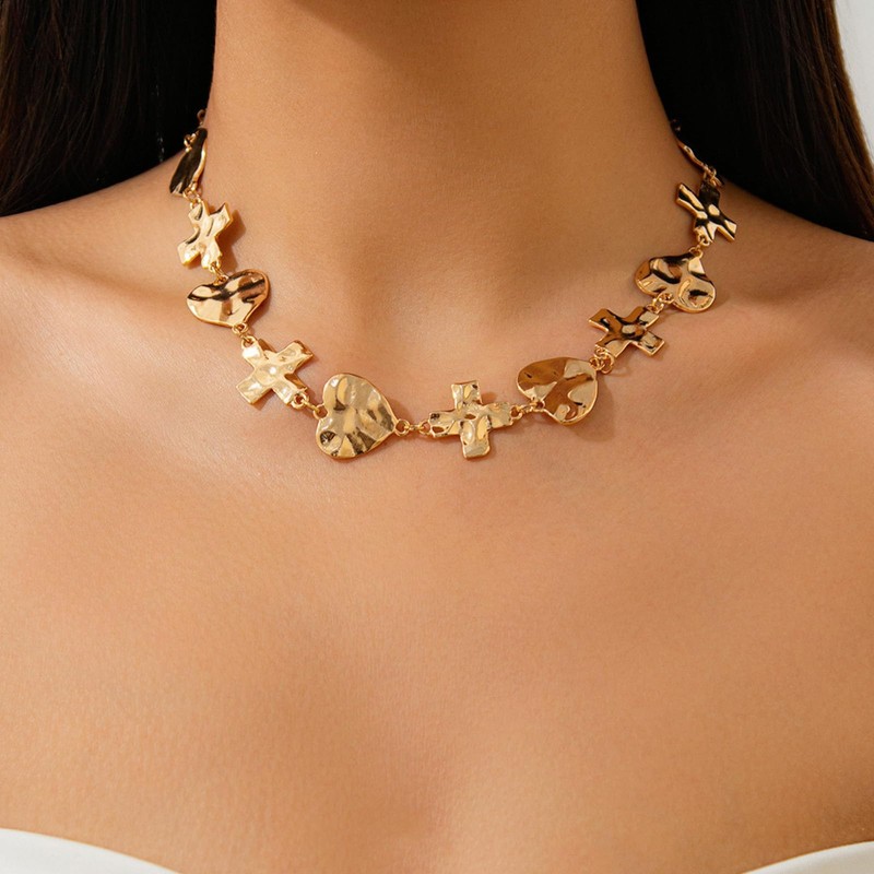 • Hammered Gold Cross Necklace for a Timeless Appeal:This gold chunky cross necklace features a hammered texture that adds a modern twist to a classic design. With its timeless appeal, it can be paired with various outfits, from casual wear to elegant evening dresses. Make a statement with this bold and stylish necklace.