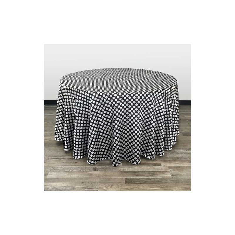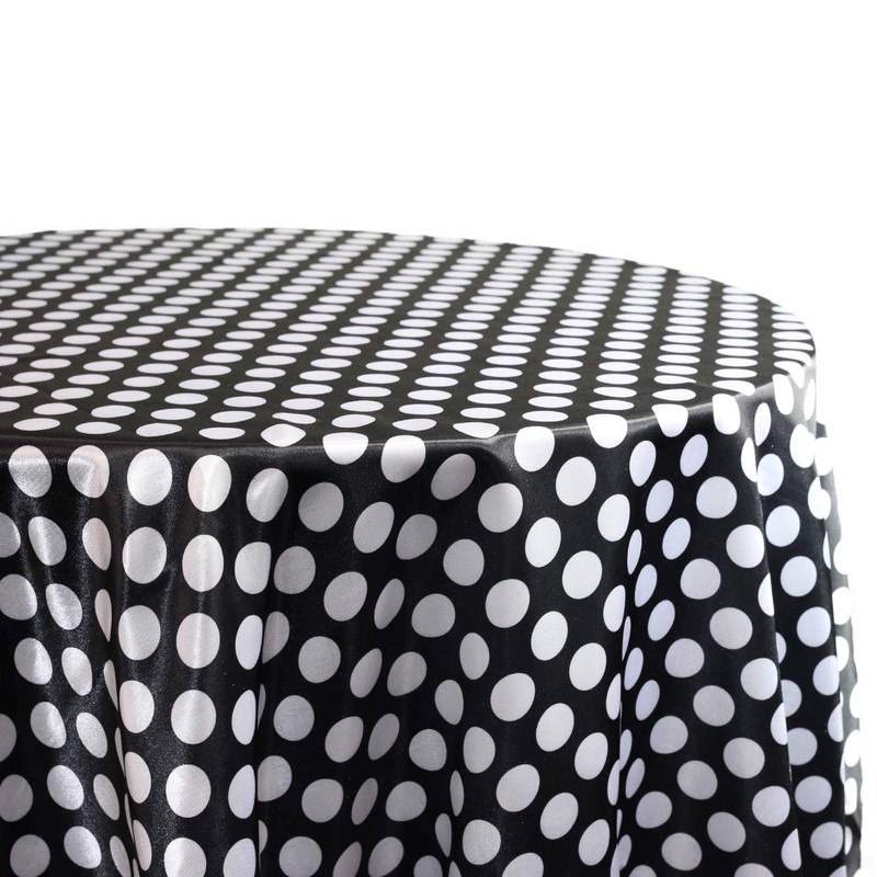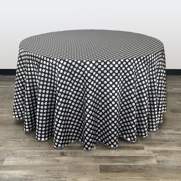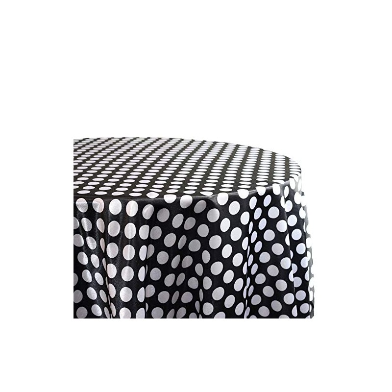 YOUR CHAIR COVERS - 120 inch Round Satin Tablecloth Black/White Polka Dot, Round Table Linens for 5 ft Round Banquet Tables