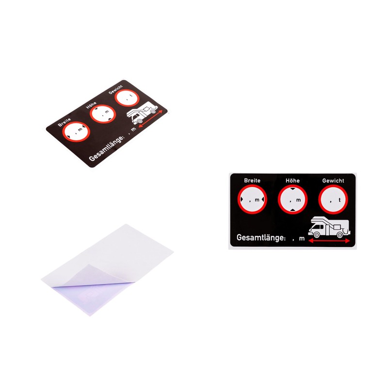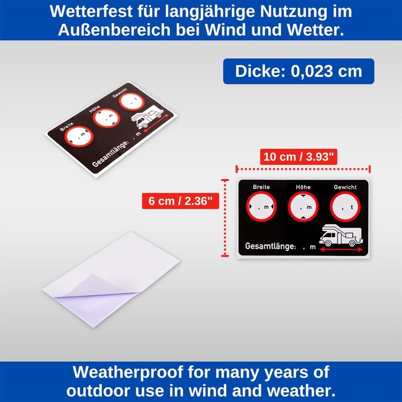 - [BESCHREIBBARE FOLIE MIT "BREITE H?HE GEWICHT GESAMTL?NGE"] Die verwendete Schriftart der Womo Klebestickers ist gut leserlich - auf der selbstklebenden Folie kann mit einem Permanentmarker geschrieben werden.