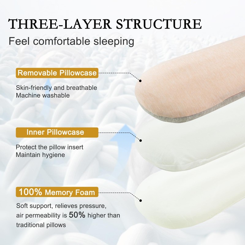 - 【High-quality memory foam】 The pillow core is made of high-quality memory foam, which fits the human body curve and cleverly balances softness and support. No matter how you change your sleeping position, it can effectively disperse pressure and relieve fatigue. The slow rebound design not only brings a comfortable touch, but also does not deform after long-term use.