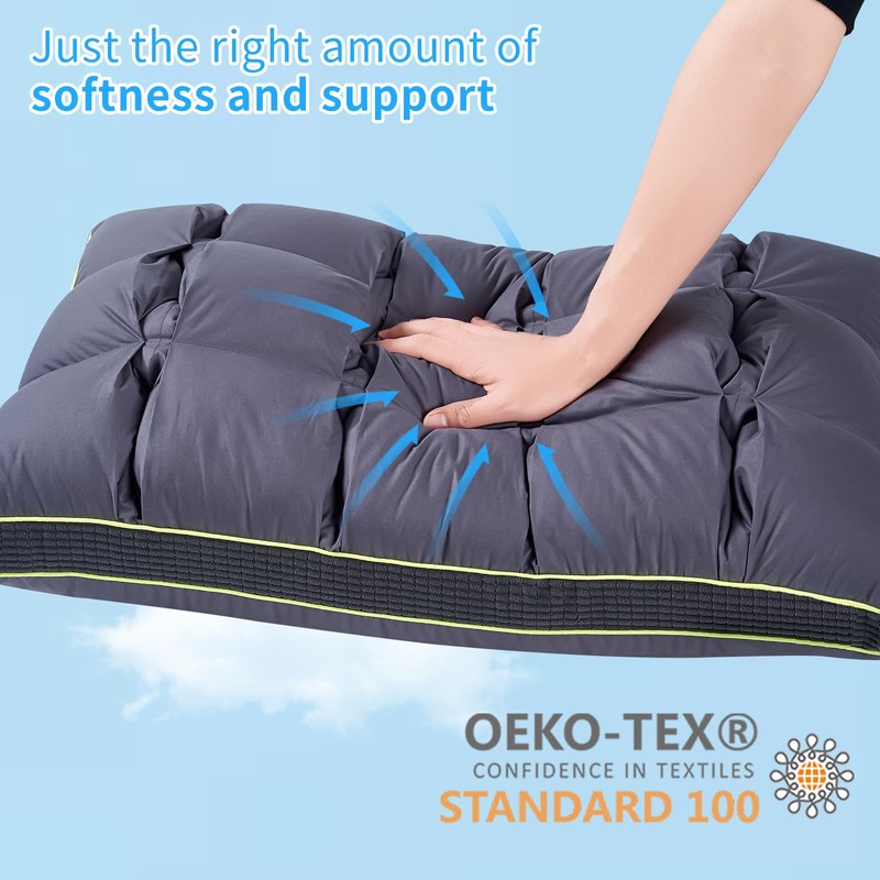 - 【Luxurious Softness, Just-Right Support】Filled with OEKO-TEX certified, premium down-alternative material, this pillow provides a plush, cradling softness along with the ideal amount of support for your head and neck. The unique 3D quilting design creates a raised, cloud-like surface, enhancing both comfort and style for a luxurious sleep experience.