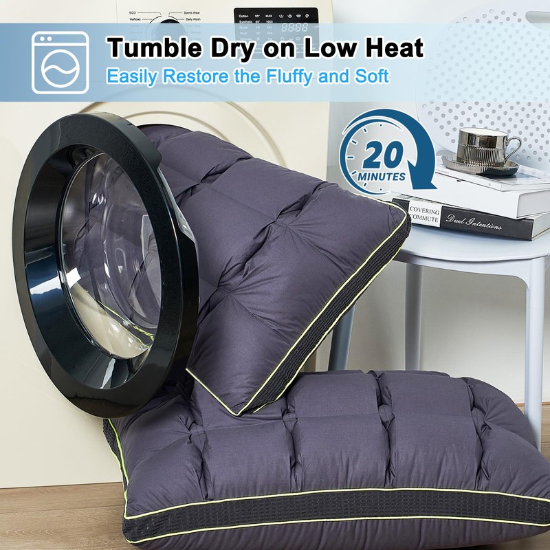 - 【Dry! Instant fluffy!】Your pillows may arrive slightly bunched or harden due to Vacuum compression. Don't worry ! No need to wait long to get back fluffy! You can use the dryer directly for low temperature drying, will quickly achieve a better fluff effect!