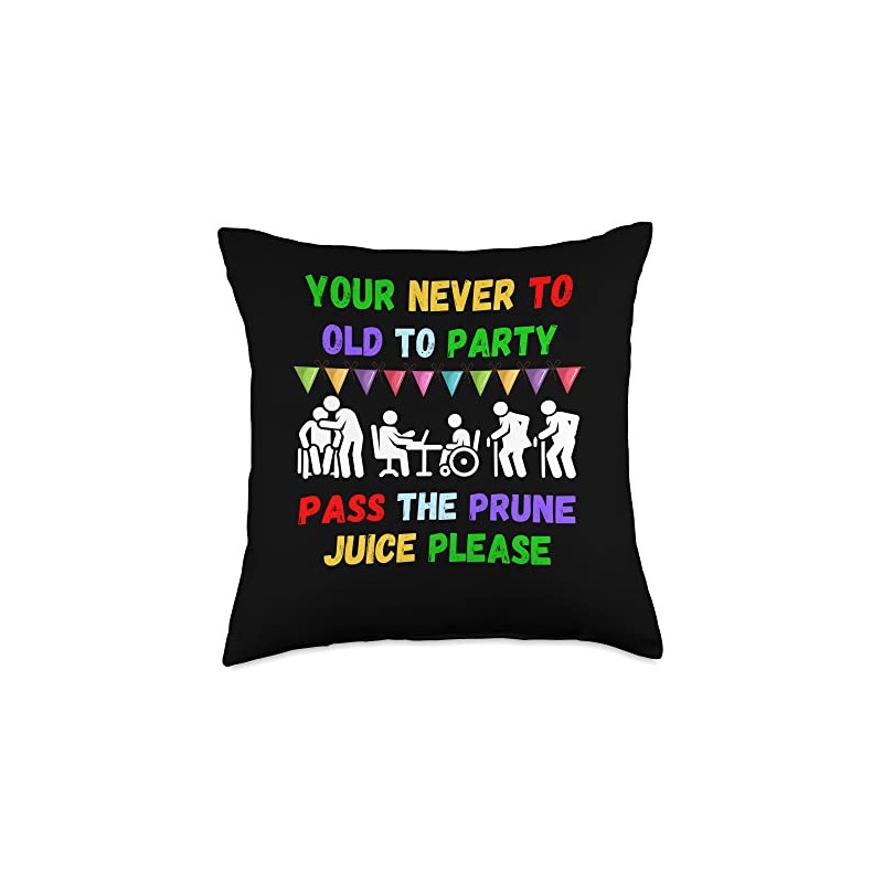 Your never to old to party pass the prune juice f Your Never to Old to Party Pass The Prune Juice for Any Age Throw Pillow, 18x18, Multicolor