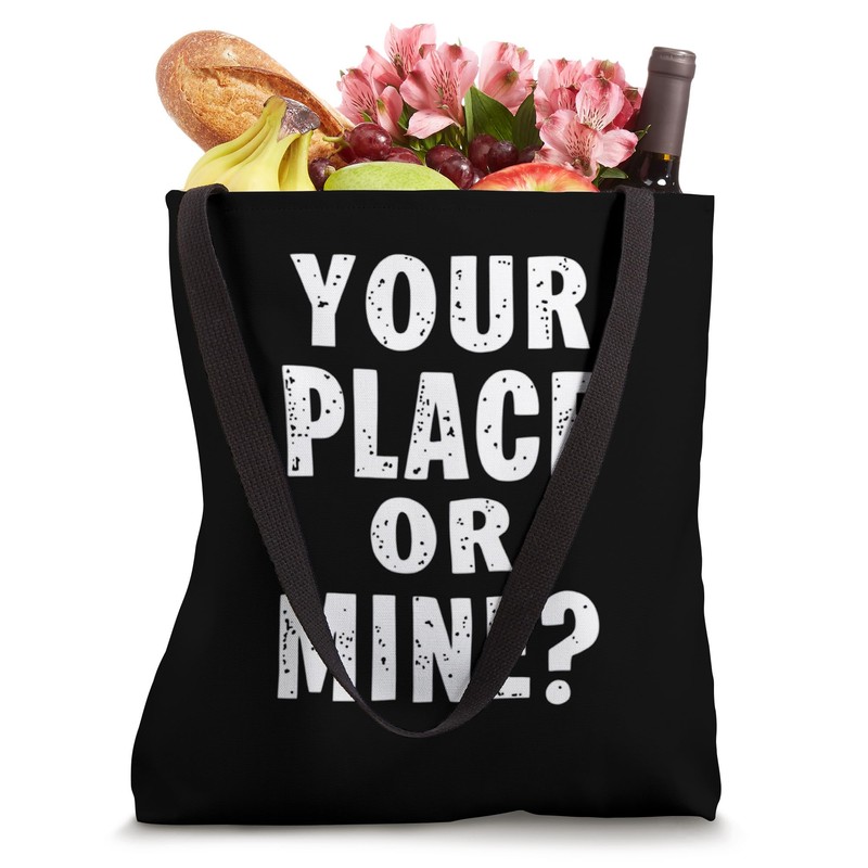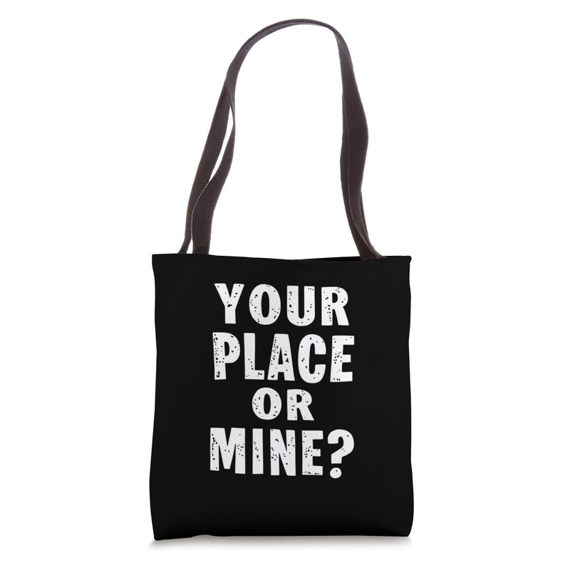 YOUR PLACE OR MINE? Bold Typography Tote Bag
