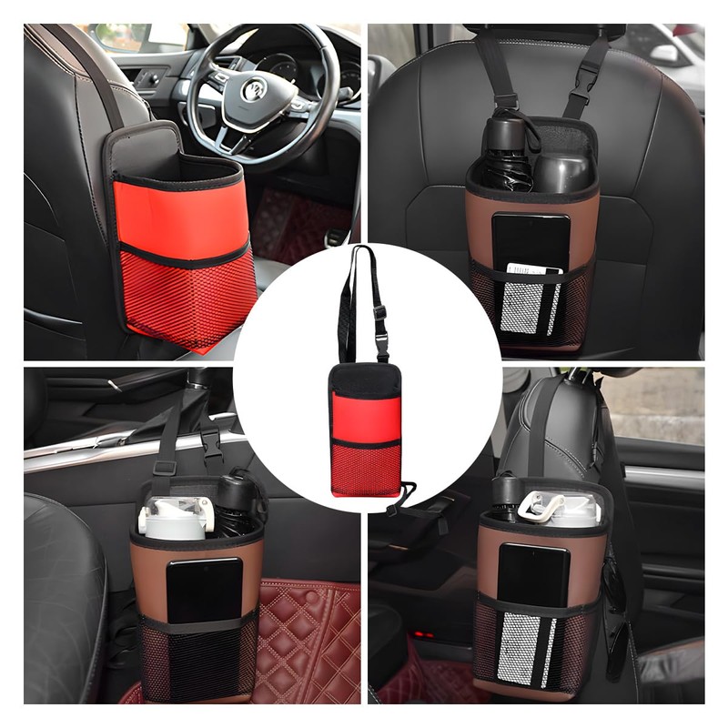 Yourkar 2 in 1 Large Cup Holder, Multifunctional Car Water Bottle Holder Bag with Adjustable Strap, Vehicle Seat Side Storage Hanging Bag with Mesh Pocket, Car Accessories (Red)