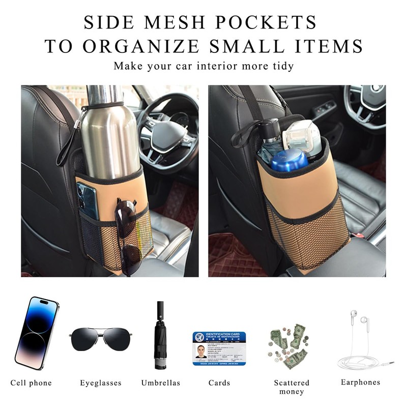 - 【Key Features】: You can use it not only for water glasses. You can also use it as an organizer for towels, umbrellas, snacks and more. The side mesh pockets can also store keys, cards, driver's license or cell phone. It can organize the items in your car in a well-organized way, so you will no longer worry about not being able to find things.