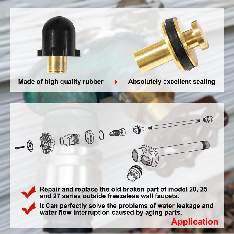 - Application - Specifically designed to repair and replace broken parts of Model 20, 25 & 27 Series outside freezeless wall faucets. This kit addresses common issues such as water leakage and flow interruptions caused by aging components