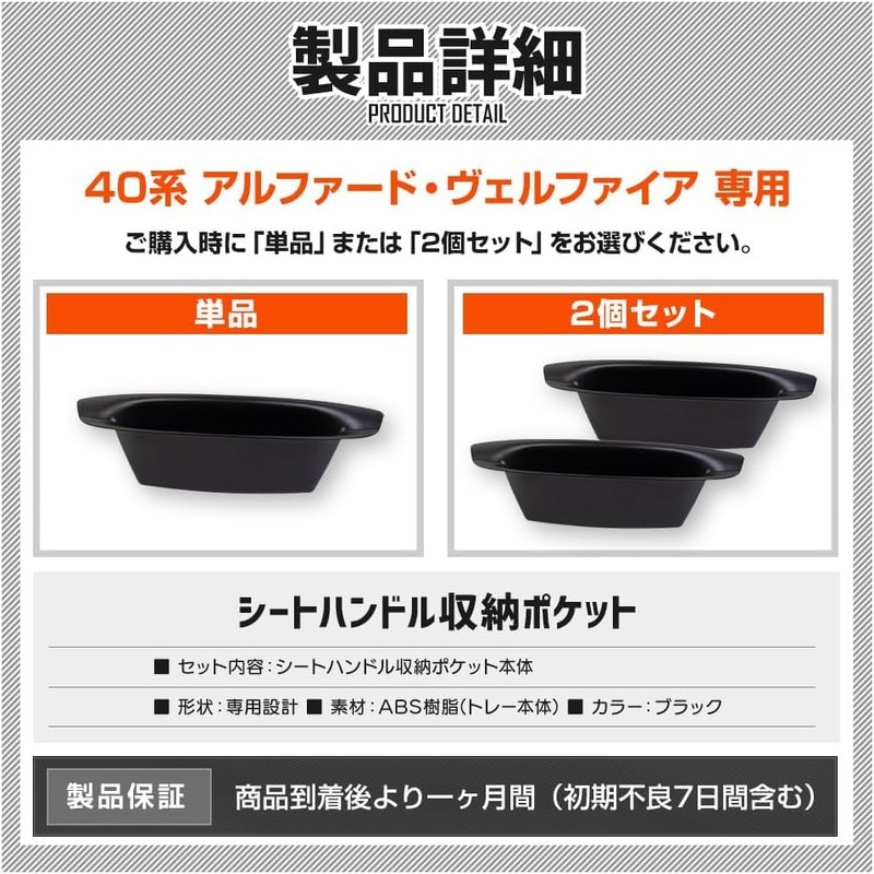 YOURS 40 Series Alphard Vellfire Seat Handle Storage Pockets (Set 1: 2 Pieces) Seat Handle Protection, Scratch-Resistant, Easy Care, Improves Convenience, Interior Accessories, Small Storage, Custom