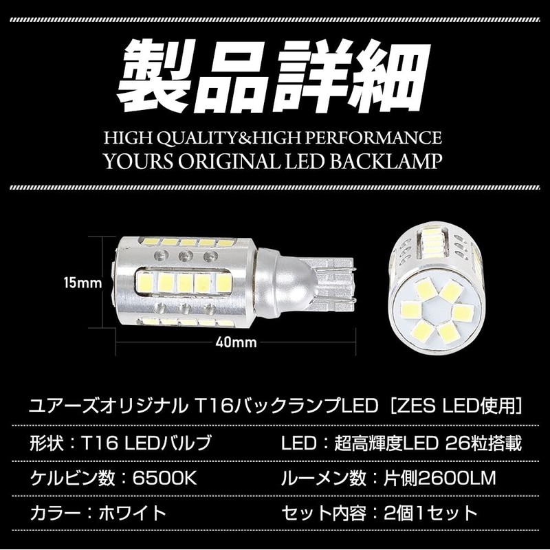 YOURS Hustler Compatible Backlight LED T16 2600LM 2 Piece Set Backlight Vehicle Inspection 6500K ZES Chip Rear Tail Custom Parts Accessories Dress Up Suzuki y501-039 [2] M
