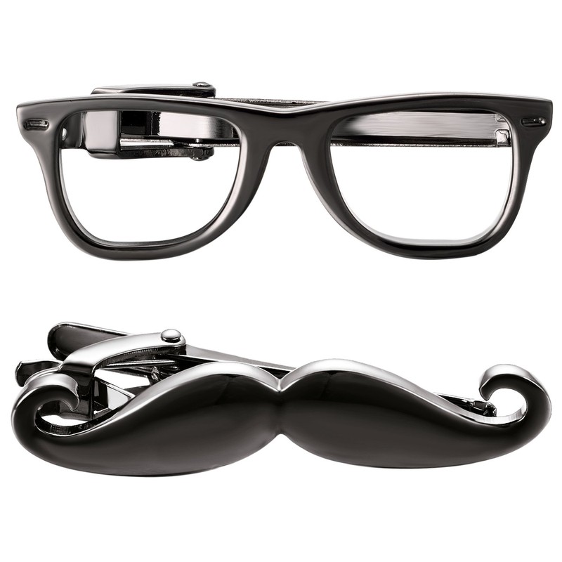 - A special mustache and glasses tie clip set makes you look more dynamic and interesting.