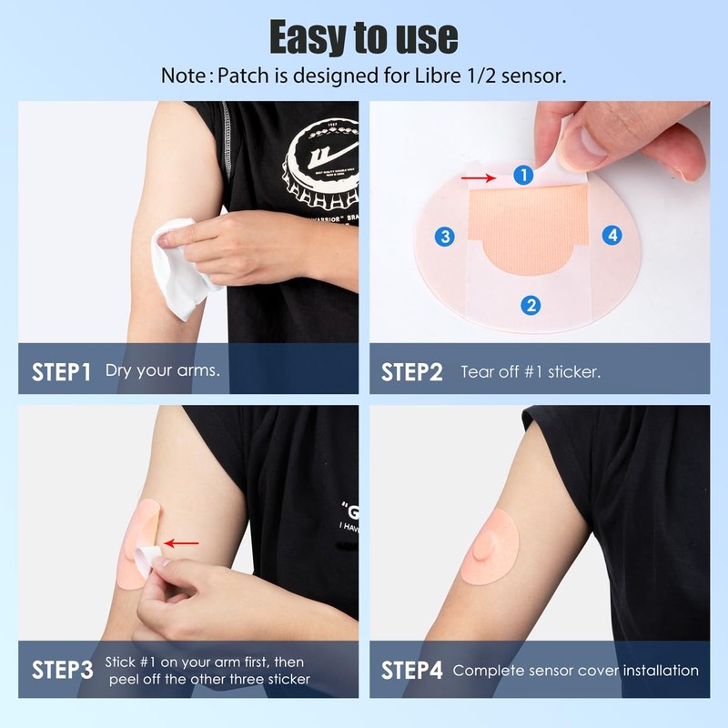 • Adhesive Patches - The Libre 2 sensor covers waterproof and sweatproof, holding the Libre 2 sensor firmly to your skin for 7 to 14 days. Libre 2 sensor stickers can protect your Libre 2 sensor device when cycling, running, swimming, showering or doing other land and water activities. It's safe to go anywhere with CGM patches without worrying about damaged your Libre sensors.