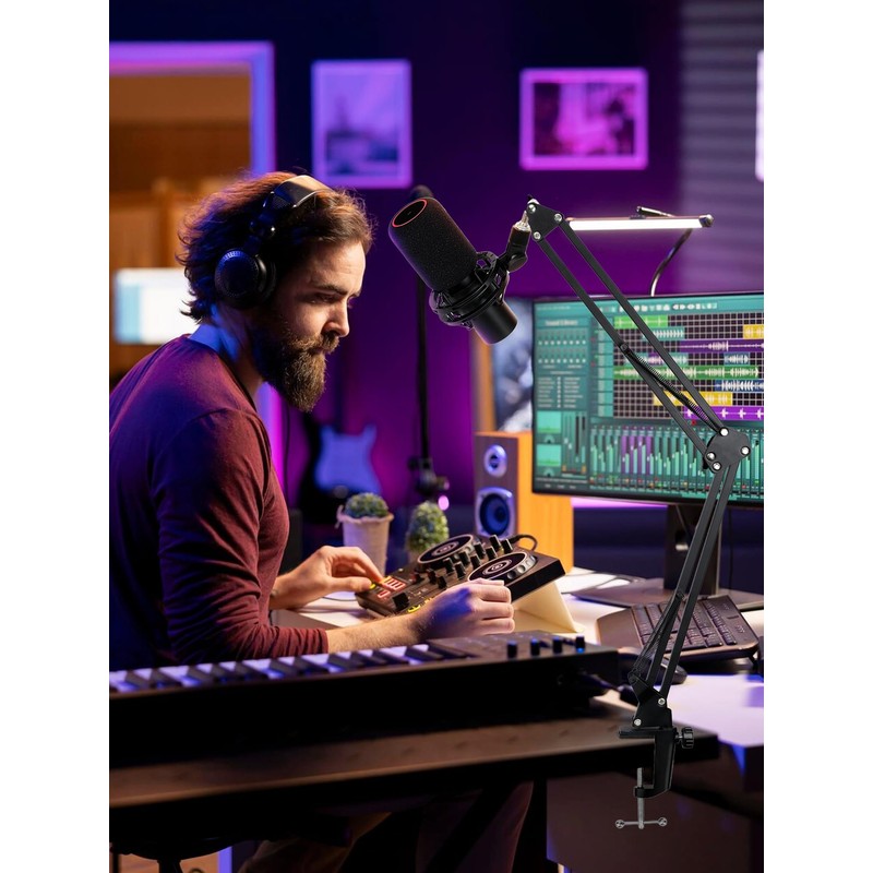 Mic Boom Arm is built with firm metal, double-braced arms and strong spring and can be used for different conditions. 180° foldable arm can be adjustable in full angle.